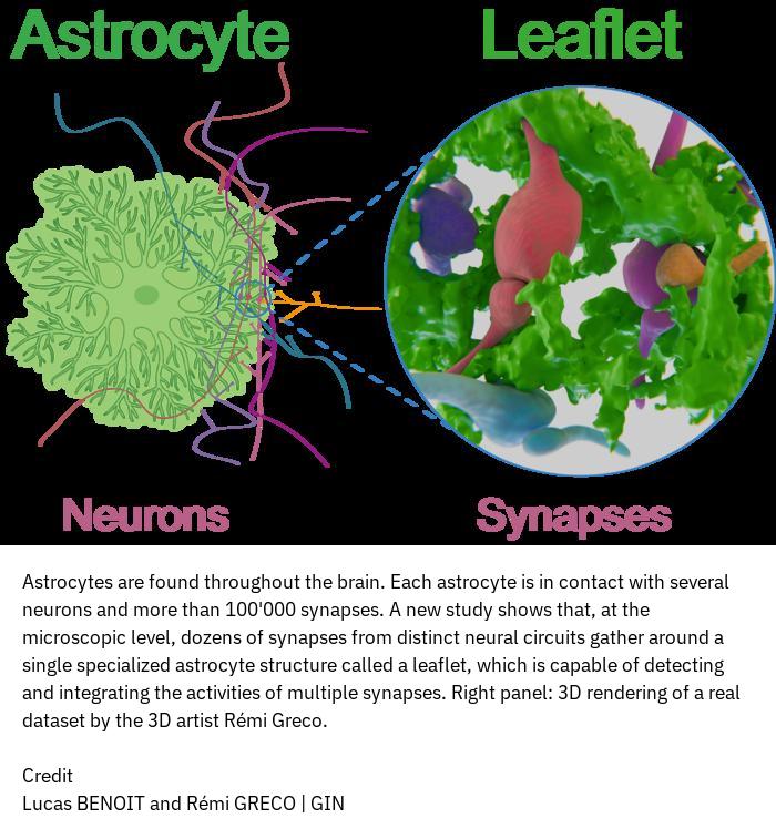 “We have demonstrated for the first time that astrocytes are not limited to responding to a single synapse, but can integrate signals from entire neural circuits,” explains Andrea Volterra (UNIL), co-director of the study.